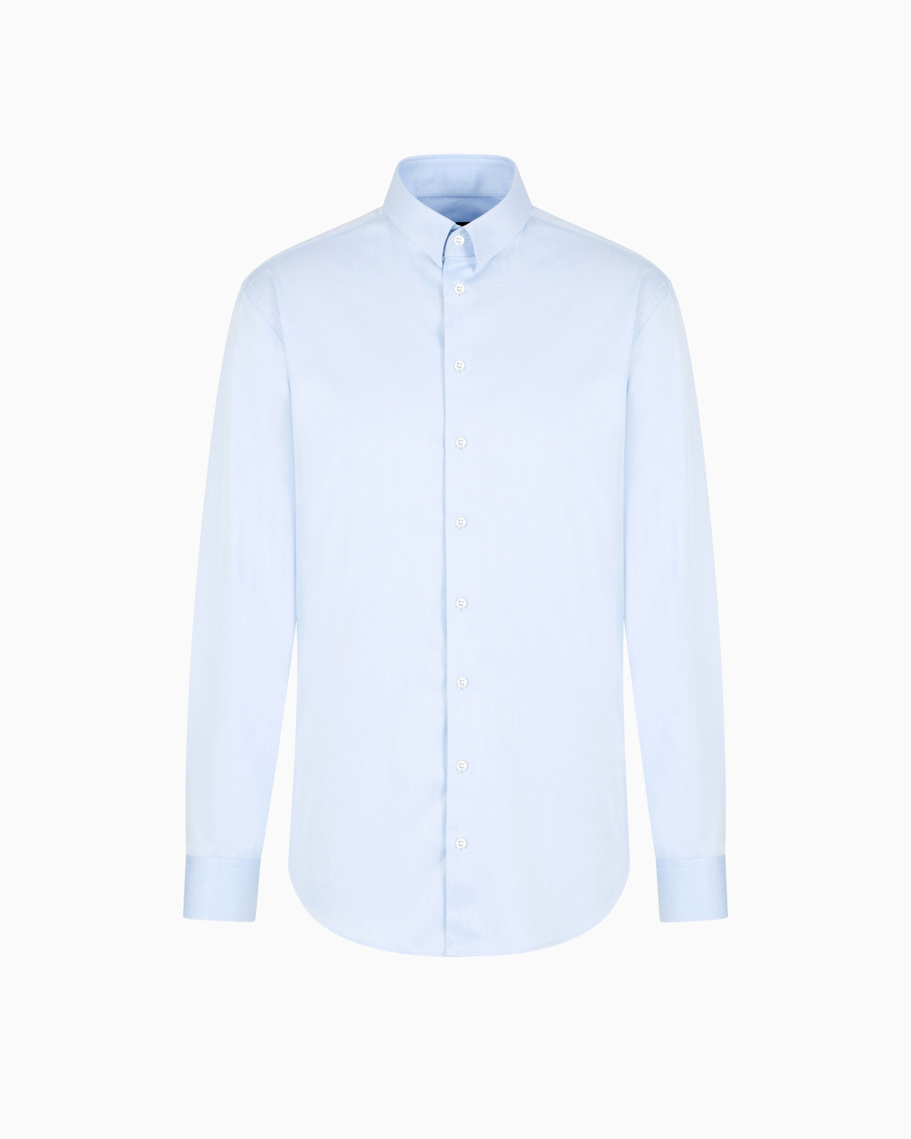 Made from smooth cotton twill, this regular-fit shirt is available in neutral shades that can be worn everywhere. It features a back yoke, mother-of-pearl buttons and a small, wide stand collar. Product Code: 8WGCCZMNTZ0641UA30 Details Composition 100% Cotton Regular fit Small high stand collar with concealed metal snap buttons Back yoke Fastened with mother-of-pearl buttons Made in Italy Fitting The model is 188 cm tall and is wearing size 40