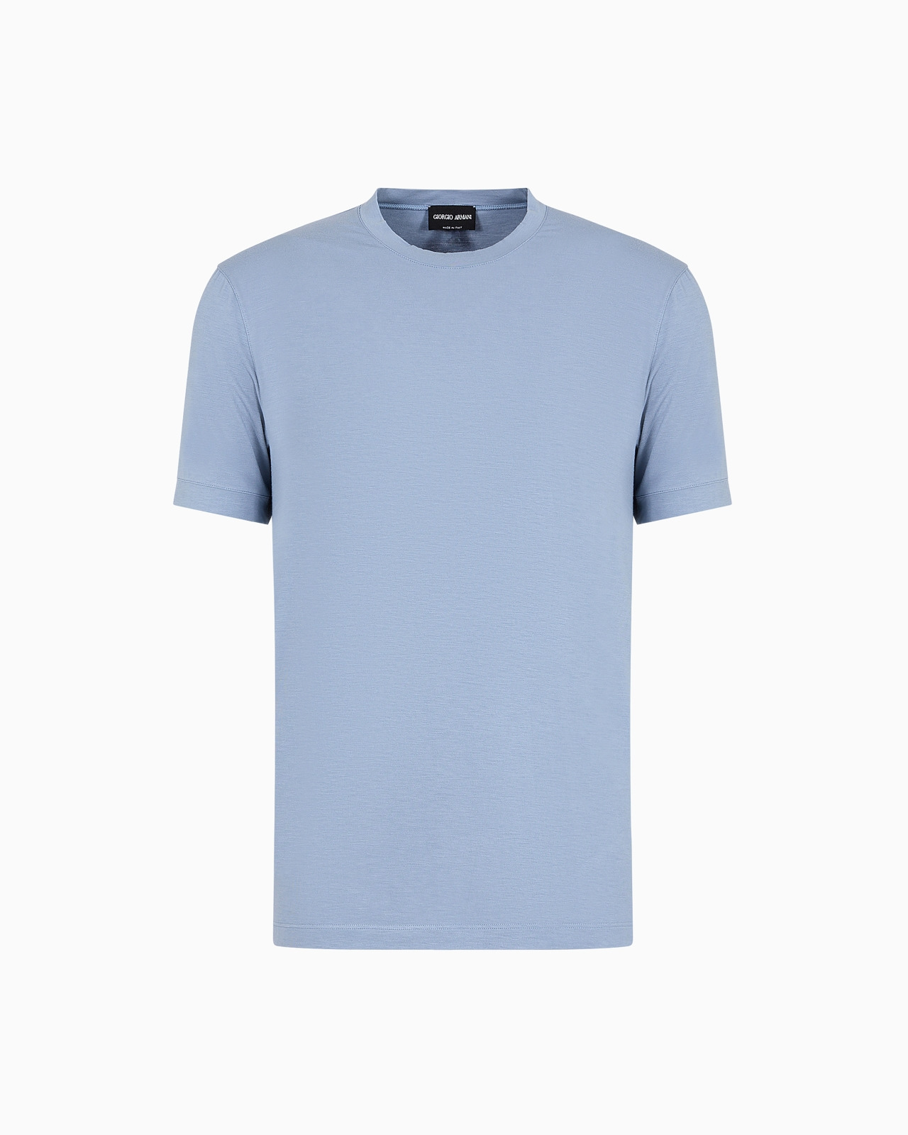 Crew-neck short-sleeved T-shirt in stretch viscose jersey