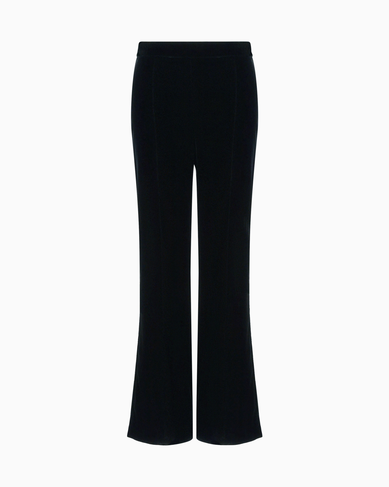 Pure elegance defines these thick velvet trousers, with the iconic fabric lending sophistication and femininity to the piece. The clean lines and minimal details make this garment a timeless piece in every woman’s wardrobe. Product Code: 8CHPP01ST00231UBWF Details Composition 66% Viscose 32% Cupro 2% Elastane Velvet Basic solid color Button, zip High waisted Fitting The model is 177 cm and is wearing size 38