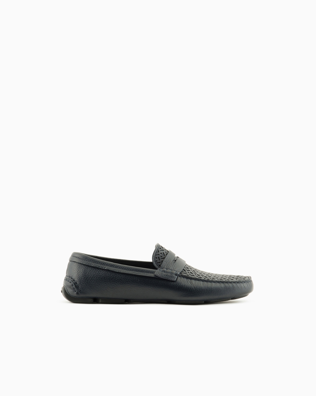 Suede driving shoes in luxurious deerskin, embellished with a special laser-cut apron with a geometric motif, bonded onto a nappa-leather base. Every detail of the style is designed with care, such as the classic loafer pinch stitching and the hand-stitched coin insert. Finished with a rubber sole, it’s a comfortable and sophisticated style that complements casual looks perfectly. Product Code: X2B124XR1261E553 Details Composition 100% Buckskin Laser-cut and bonded apron on a matching nappa leather base Hand-stitched penny strap insert Classic loafer pinch stitching Calfskin lining Rubber soles Made in Italy