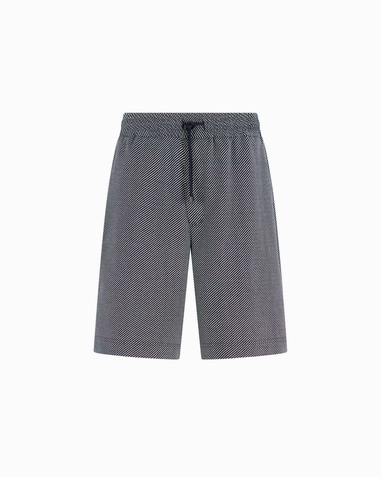 Comfortable Bermuda shorts made from cotton with a diagonal striped motif that recreates a denim effect. Featuring an elasticated drawstring waistband and side pockets, the style is customised with an embroidered GA logo on the back pocket and lends itself to numerous daytime looks. The garment is part of the Denim collection, an apparel selection featuring rich blue denims and relaxed sportswear-inspired shapes that offer laid-back but sophisticated style. Elasticated waistband with drawstring Two side pockets One back pocket Contrasting GA logo embroidered on the back pocket Made in Italy Product Code: GM001617AF15766FB004