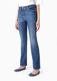 Five-pocket, flared trousers made from stretch-cotton denim, with a comfortable fit and soft feel. The high-waisted style with slanted topstitched pockets is customised with an embroidered GA logo on the back pocket, recalling other pieces from the collection. Extremely versatile, it perfectly completes a wide array of looks. Product Code: 3SHPP0VXT040L1UBJ9 Details Composition 98% Cotton 2% Elastane Flared fit Button and zip fastening Front pockets Two back patch pockets Embroidered GA logo Made in Italy