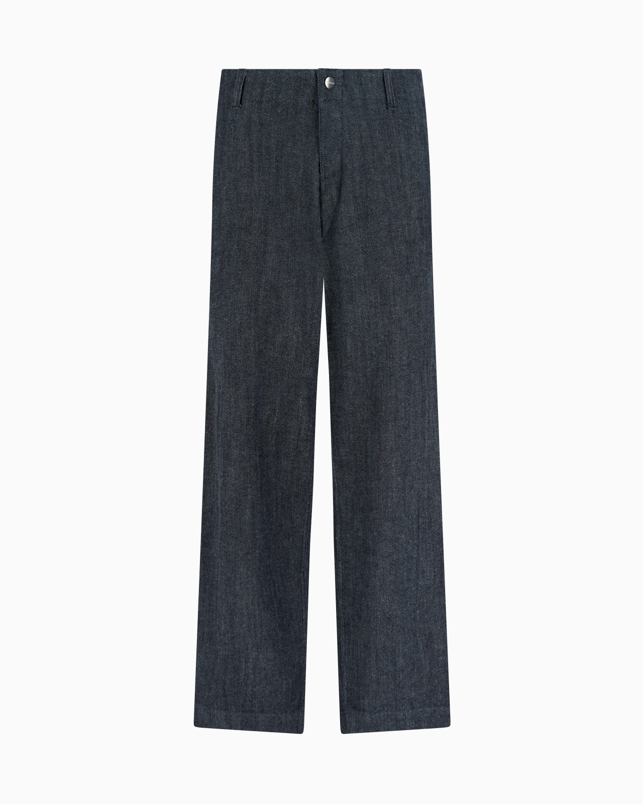 Jeans made from stretch cotton with modern volumes. With a waistband and belt loops, side pockets and a back flap pocket, the style is distinguished by a dark wash, making it sophisticated. The garment is part of the Denim collection, an apparel selection featuring rich blue denims and relaxed sportswear-inspired shapes that offer laid-back but sophisticated style. Waistband with belt loops Button and zip closure Two side welt pockets One back pocket with flap and button Made in Italy Product Code: GM001303AF14903MB001