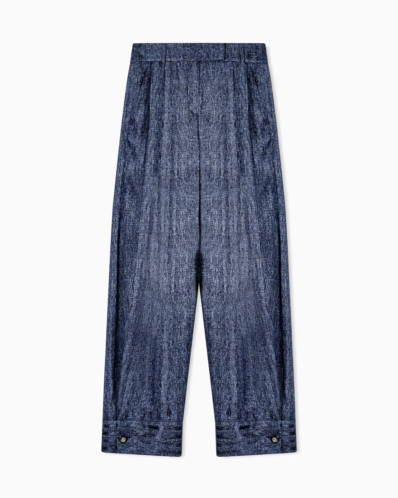 DENIM-PRINT SILK TROUSERS WITH PLEATS DENIM COLLECTION