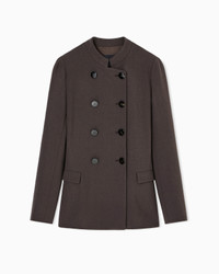 Double-breasted jacket made from luxurious wool crepe with a cosy, warm feel. With its slim lines that elegantly adorn the feminine silhouette, this style features a guru collar, double-breasted fastening with horn buttons and front pockets with flap. A refined, classic item designed to add a sartorial touch to a wide array of formal, sophisticated looks. Double-breasted jacket Guru collar Double-breasted closure with eight buttons Two front flap pockets Slit in the cuff Length: 66 cm from centre back Made in Italy Product Code: GW001899TE14246U8130