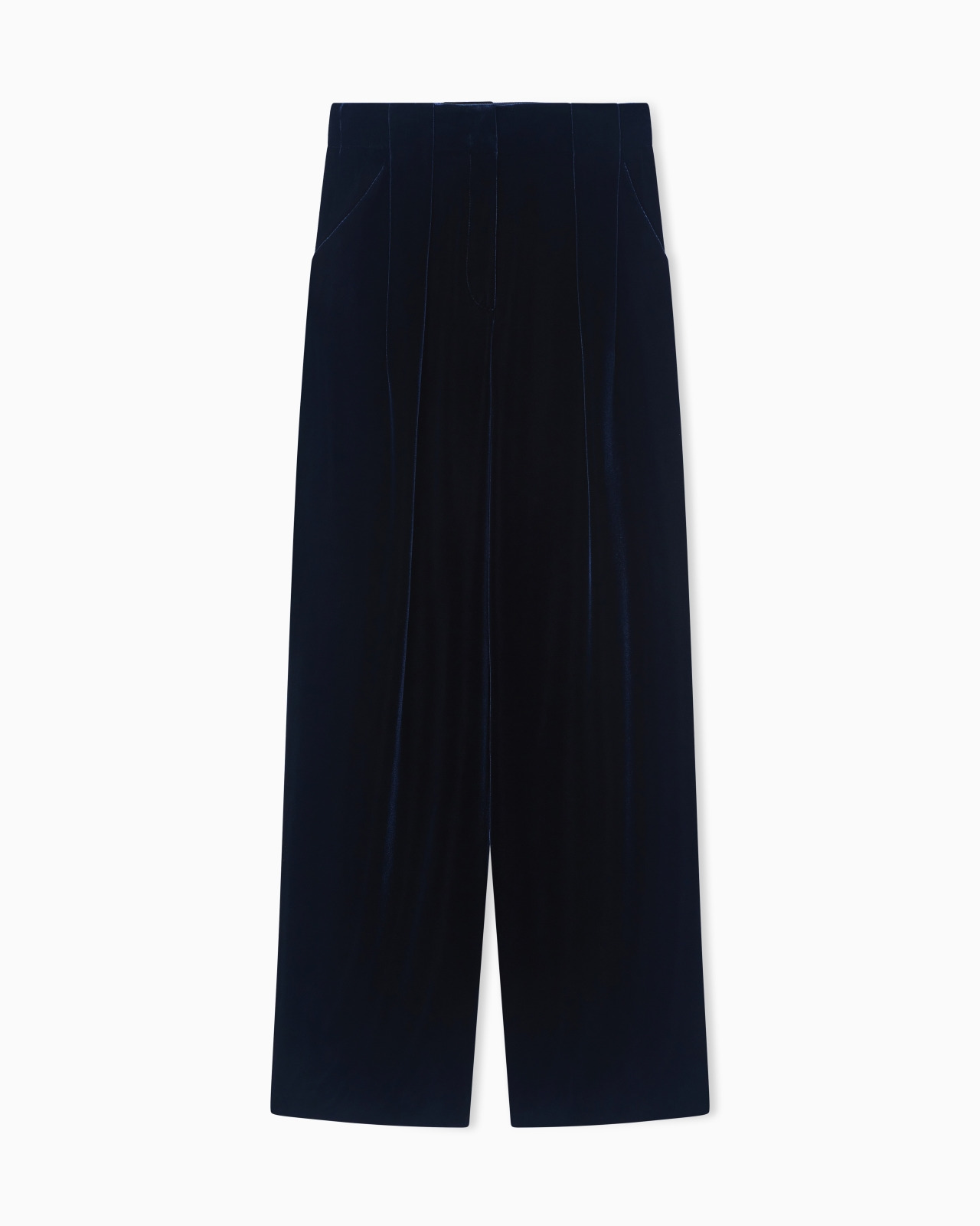 Two-pleat, relaxed-fit trousers made of velvet, the brand’s iconic fabric that is instantly recognisable thanks to its smooth feel and incredible ability to capture the light. Created using silk and viscose, it owes its particular silky feel to the special upward cut of the warp yarns. The clean-lined style features a smooth waistband, zip closure and two side welt pockets. A versatile piece to pair with various collection items to create always current looks. Smooth waistband Concealed zip-and-hook closure Two side slant pockets Unlined Made in Italy Product Code: GW002973TE10831UB115