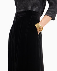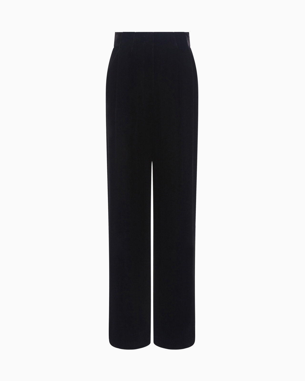 Elegant two-pleat trousers made of velvet. Featuring a zip fastening and two side welt pockets, the style is distinguished by its clean. essential lines, which freely follow the feminine silhouette. A sophisticated style that completes a wide array of looks when worn with the collection’s jackets and blouses. Product Code: GW000863TE108311UC001 Details Composition 80% Viscose 20% Mulberry silk Double pleats Waistband with large belt loops Zip-and-button fly closure with placket Two side welt pockets Unlined Made in Italy