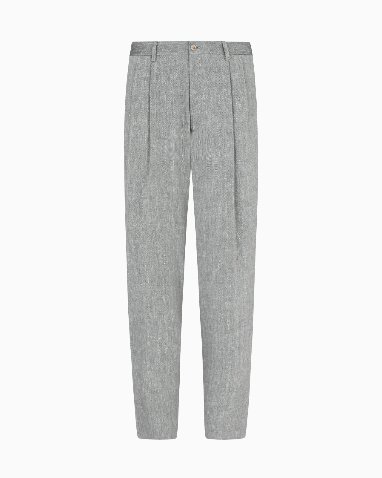 DOUBLE-PLEAT TROUSERS IN CHEVRON LINEN AND VIRGIN WOOL