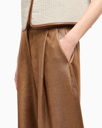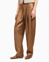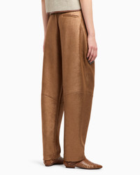 Refined one-pleat trousers made of double jersey, embellished by the almost metallic effect of the yarn. A style with a smooth waistband, slanted pockets and matching stitching on the knees, the relaxed fit adorns the feminine silhouette without restrictions. Perfect with a collection top and jumper for laid-back, chic looks. The piece is part of the New Normal selection, an offering that reinterprets the brand’s archive looks with a modern twist. Pieces in elongated and fluid shapes and with an androgynous flavour dress the feminine silhouette with elegance for day-to-night looks. This season it comes in a natural colour palette animated by a series of chevron motif and houndstooth shapes, a clear reinterpretation of pieces "stolen" from the male wardrobe with a feminine twist. Single-pleat trousers Smooth waistband Zip closure Two side pockets Single back welt pocket Stitching detail on the knee Length from the waist: 105 cm Made in Italy Product Code: GW002233AF20155O6003