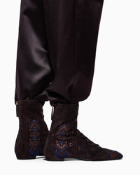Square-toed ankle boots made of suede, with a practical zip fastening on the back. A modern style, embellished with geometric-inspired embroidery on the upper, perfect for adding a laid-back twist to daytime looks. Suede upper Square toe Back zip closure Contrasting geometric-inspired embroidery Covered heel Heel height: 1.5 cm Made in Italy Product Code: GW002634AF22228M6251