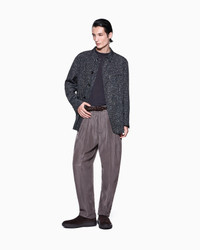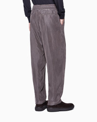 Flat-front trousers made of Lyocell canvas, a semi-synthetic fibre that is produced from eucalyptus trees and has an exceptionally low impact on the environment. It is valued for its excellent durability, capacity to absorb moisture, breathability and crease resistance. The style features an elasticated waist with drawstring and has side and back pockets, the only details that embellish its clean, minimalist lines. A relaxed and versatile offering that is perfect with relaxed shirts or T-shirts.<br>The piece is part of the Holiday selection that plays with a striking colour palette, incorporating black onyx, sky blue and ivory. These shades are combined with luxurious fabrics like linen and silk, and iconic ones, like cupro and Lyocell, creating a unique experience in texture. Modern, relaxed shapes dress up different occasions with unmistakable Giorgio Armani style. Elasticated waist with drawstring Two side pockets Two back welt pockets Cuff width: 18 cm Made in Italy Product Code: GM001744TE16002U7001