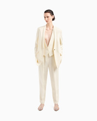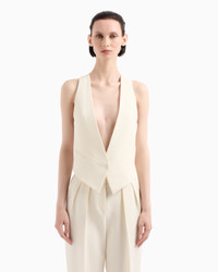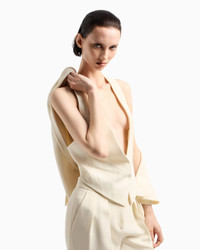 A plunging V-neckline defines this single-breasted waistcoat made from silk cady. Brightened by a subtle glitter, it features two slanted welt pockets and contoured openings at the back. A feminine and versatile offering, perfect for wearing with the collection’s shirts. Single-breasted waistcoat V neck Front closure with press stud Two slant welt pockets Symmetrical openings at the back Lined Made in Italy Product Code: GW000794TE14756U0006