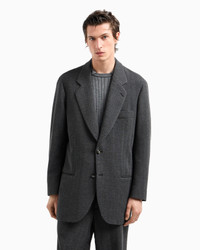 HERITAGE LINE SINGLE-BREASTED JACKET IN CHEVRON JACQUARD STRETCH VIRGIN WOOL
