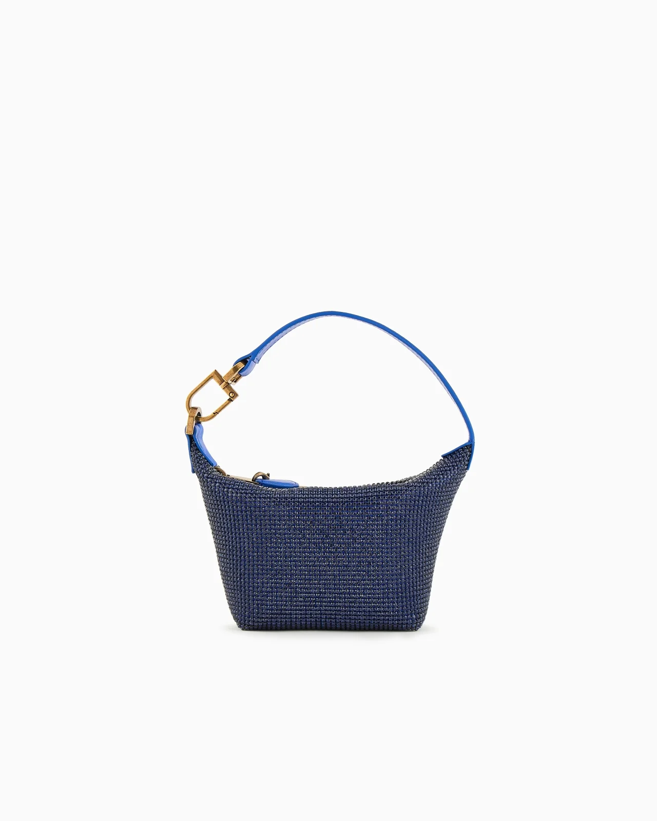 A new format for the la Prima Soft family, made of a metallic knit and embellished with an all-over rhinestone motif. This very bright mini handbag with a zip fastening is extremely versatile: the shoulder strap can be extended using the gold-tone metal snap-hooks for crossbody wear. A modern, fresh accessory, perfect for accompanying different looks. Product Code: Y1H521YWV5D180013 Details Composition 80% Brass 20% Glass Zip closure Handle with snap-hook Removable nappa-leather shoulder strap Heat-stamped Giorgio Armani Milano logo Measurements: 26.5 x 18.5 x 5.5 cm Made in Italy