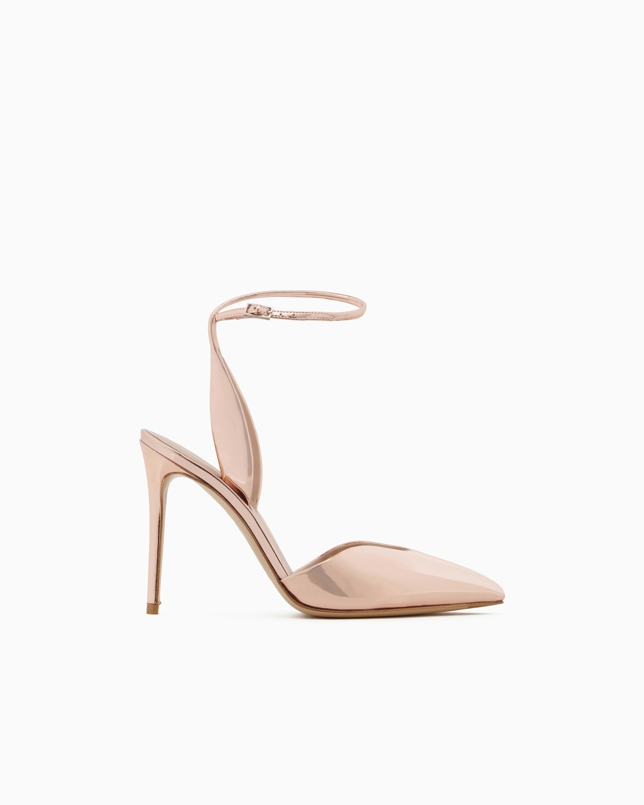 Tapered, sensual court shoes made of mirror-effect lame leather with a contoured collar and ankle strap. This elegant style adds a special touch to evening looks. Product Code: X1E956XF765100781 Details Composition 100% Calf-skin leather Pointy toes Adjustable lame leather ankle strap Slightly padded uppers Leather insoles Covered stiletto heel Heel height: 10.5 cm Leather soles Made in Italy
