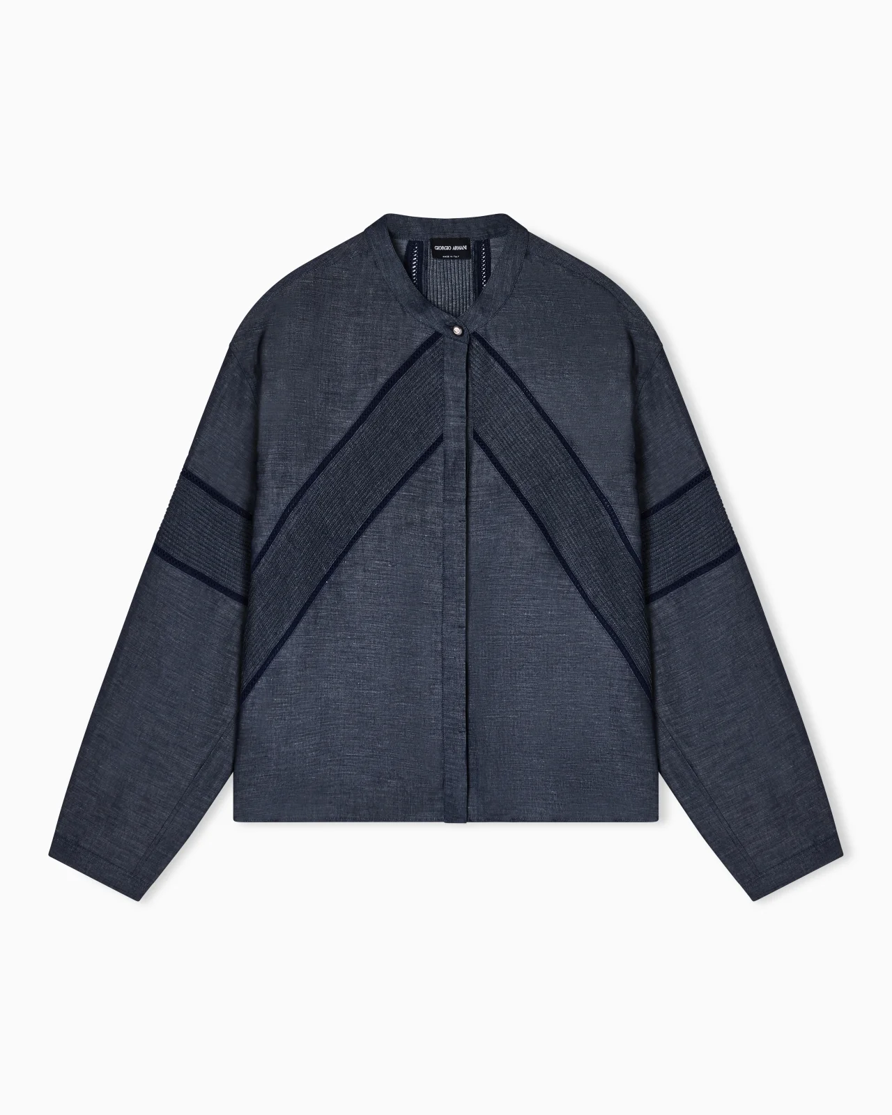 Shirt with a modern attitude, made of linen and Lyocell. A versatile garment featuring concealed buttoning and embellished with pleated fabric inserts that add movement and character. The piece is part of the Denim Collection, which interprets the world of denim through the brand’s iconic style. This selection features rich blue denims and relaxed sportswear-inspired shapes that offer laid-back but sophisticated style. Crew neck Concealed button closure Long sleeves Single-buttoned cuffs Matching-colour pleated fabric inserts Made in Italy Product Code: GW003065AF26110ZZ116