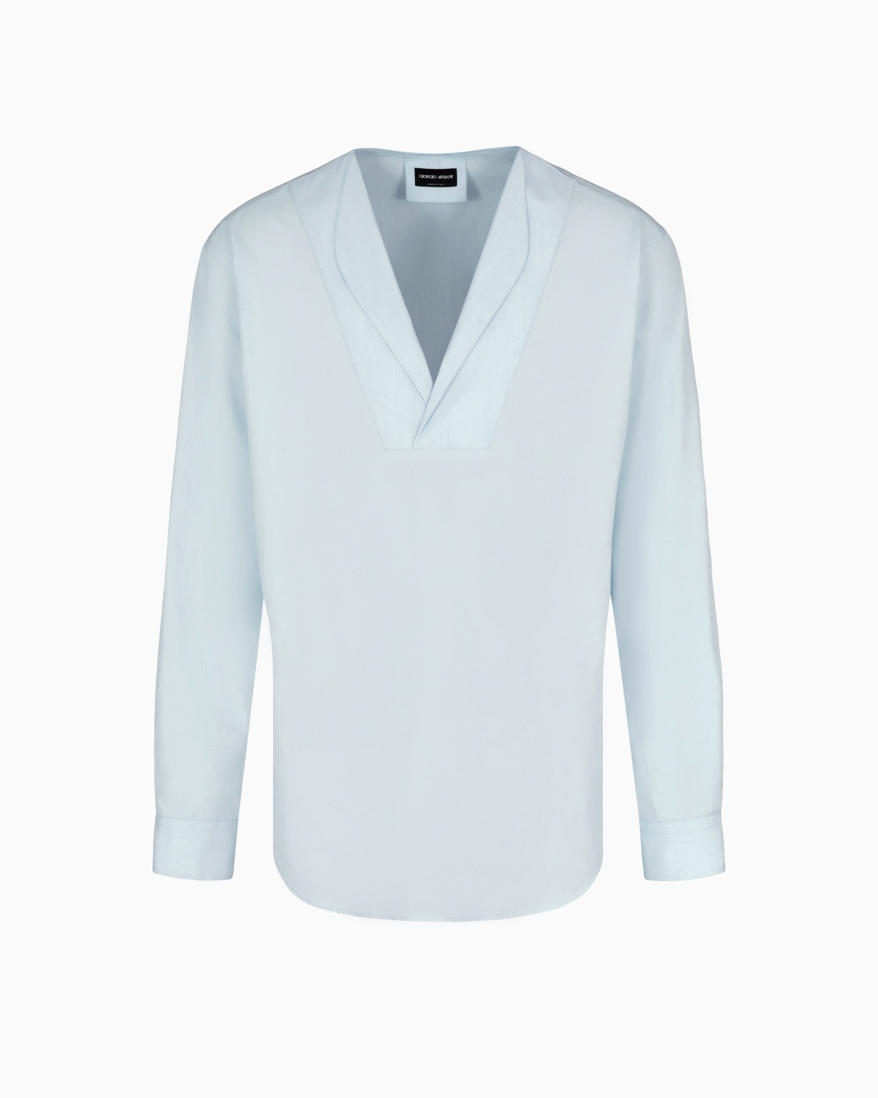 Loose-fit and a relaxed look for this distinctive polo shirt crafted from linen and silk. The style has a collar with shawl lapels, buttoned cuffs with a sleeve placket and rounded hem, making it perfect for completing outfits with a relaxed and sophisticated style, suitable for various occasions. Loose fit Collar with shawl lapels and V neck Cuffs with button and sleeve placket Rounded hemline Made in Italy Product Code: GM001418TE14682U9309