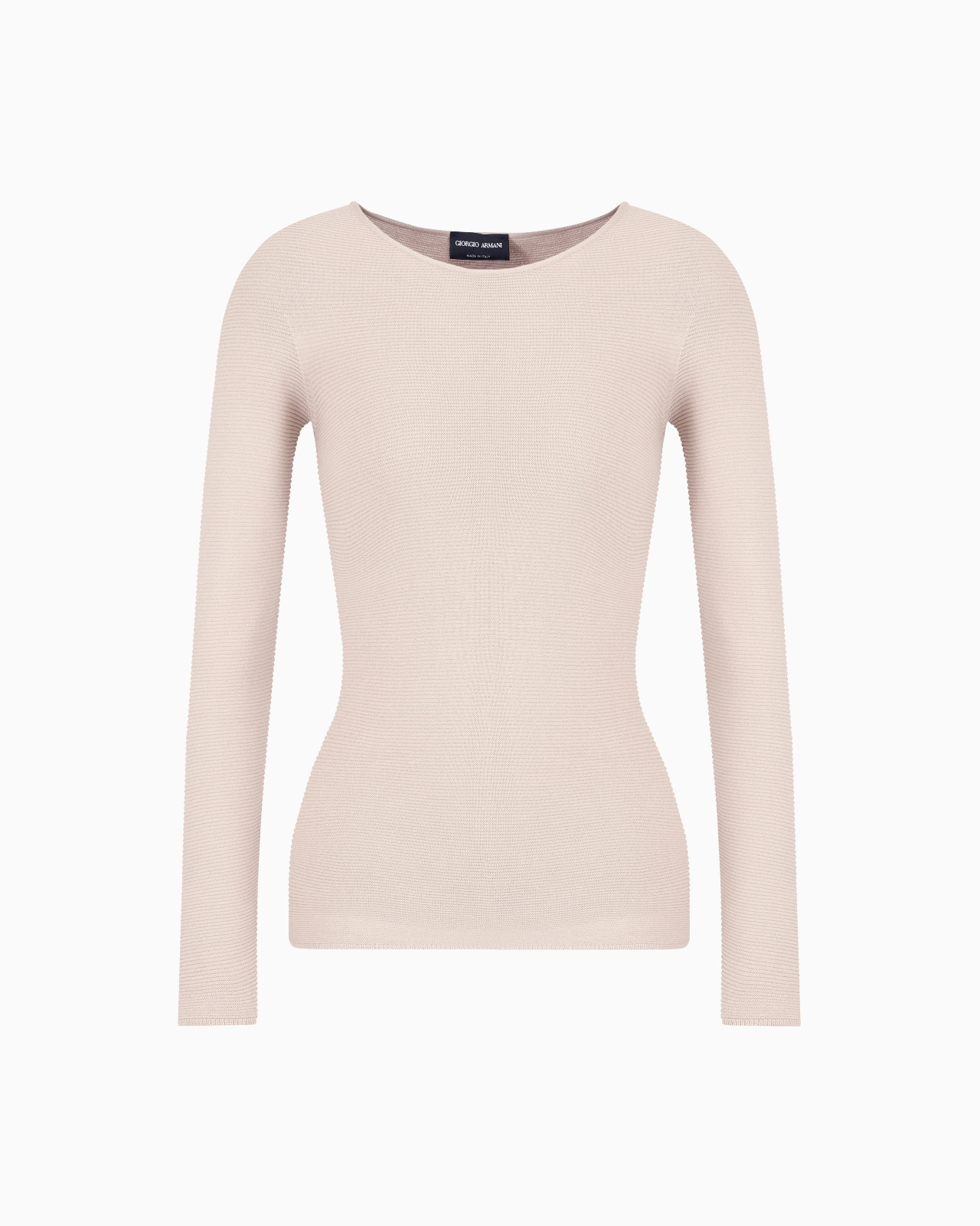 Long-sleeved crew-neck jumper made from a viscose blend with slim, clean lines, with an extremely comfortable fit thanks to its seamless construction. Simple yet sophisticated, it is an essential piece to capture the spirit of Giorgio Armani style. Fineness: 15 Seamless Crew neck Long sleeves Made in Italy Product Code: 8NAM31AM05ZU8048