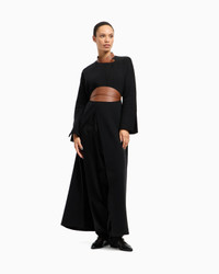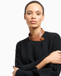 Long, relaxed-fit coat made from a wool and cashmere knit, available in deep black. The style is distinguished by contrasting lambskin details at the collar and a contoured belt that accentuates the waist. An offering that lends itself to being elegantly combined with numerous daytime looks. The piece is part of the New Normal selection, an offering that reinterprets the brand’s archive looks with a modern twist. Pieces in elongated and fluid shapes and with an androgynous flavour dress the feminine silhouette with elegance for day-to-night looks. This season it comes in a natural colour palette animated by a series of chevron motif and houndstooth shapes, a clear reinterpretation of pieces "stolen" from the male wardrobe with a feminine twist. Fineness: 7 and 18 Contrasting lambskin collar with strap and button Concealed button closure Contrasting lambskin contoured belt Two side pockets Length: 130 cm Made in Italy Product Code: GW002101AF19704UC001