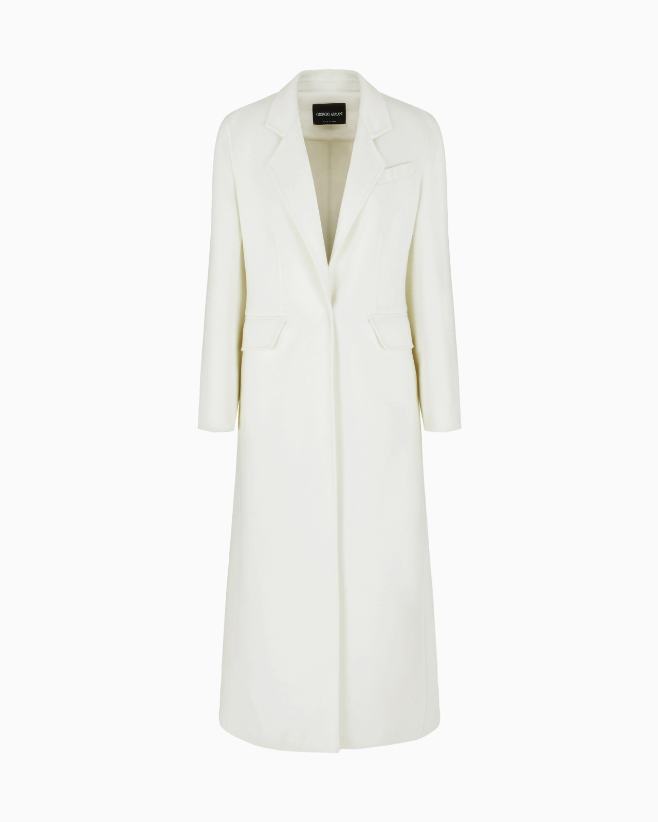 Made from double-faced cashmere, this distinctive, elegant long coat can be worn anywhere, making it perfect in formal or less formal looks. It is the embodiment of the brand’s hallmark sophisticated, refined style. Product Code: 2WHOL093T02O91U0BN Details Composition 100% Cashmere Single-breasted closure with a single press stud Collar with notched lapels Straight flap pockets Centre-back slit Length: 125 cm Made in Italy