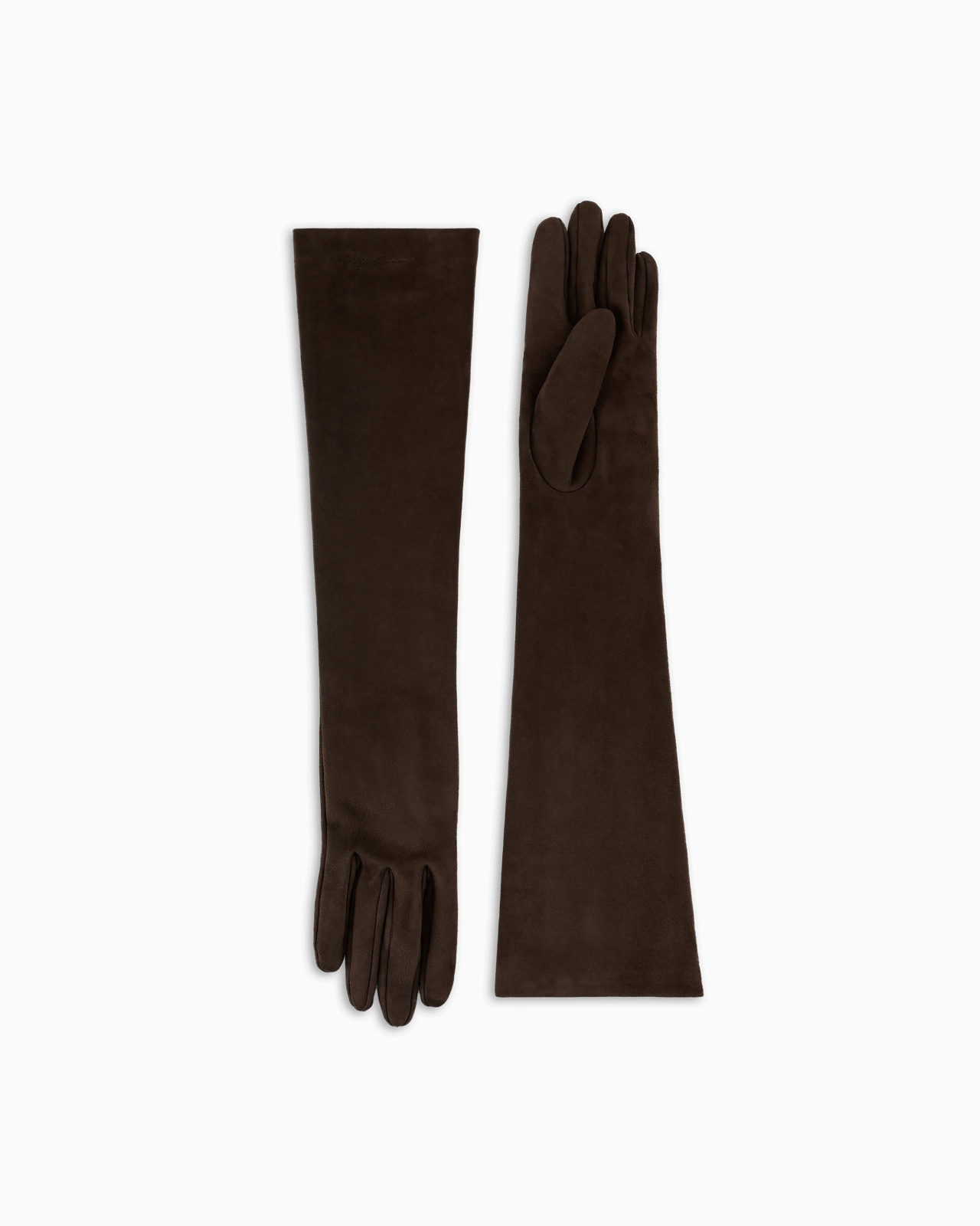 Elegant, sophisticated long gloves made of soft nappa leather lined with silk. A style with retro appeal, customised with an embossed signature logo. Product Code: 7942063F204102854 Details Composition 100% Lambskin Customised with an embossed signature logo Silk lining Made in Italy