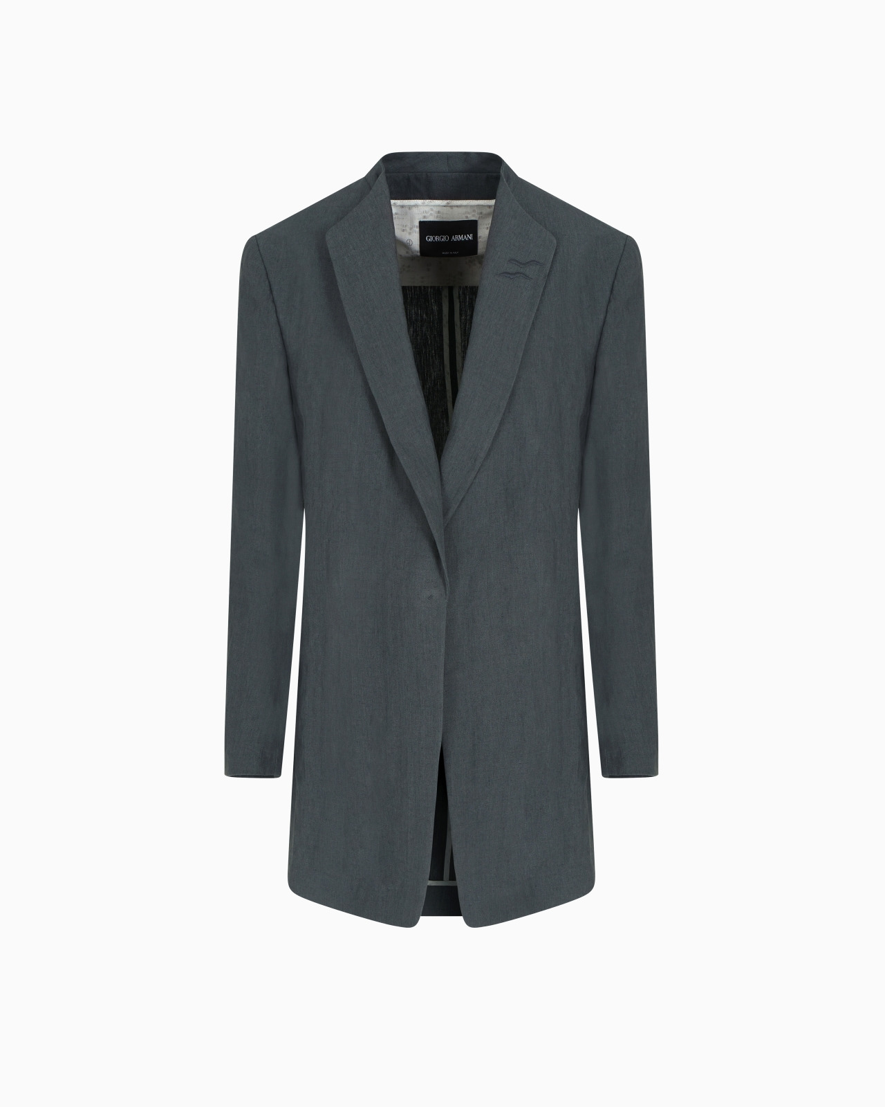 This single-breasted jacket is made from fresh linen with a comfortable, silky feel and has a fluid, unstructured silhouette. The single-breasted style has side slits and is embellished with a matching embroidery on the lapel recalling the urban tiger theme that repeats throughout the collection. Pair it with the trousers in the same fabric to create effortlessly chic outfits. Single-breasted jacket Single lapel Single-breasted closure with concealed button Two side pockets Back vents Matching embroidery on the lapel Partially lined Length: 75 cm Made in Italy Product Code: GW000847TE11126U8110