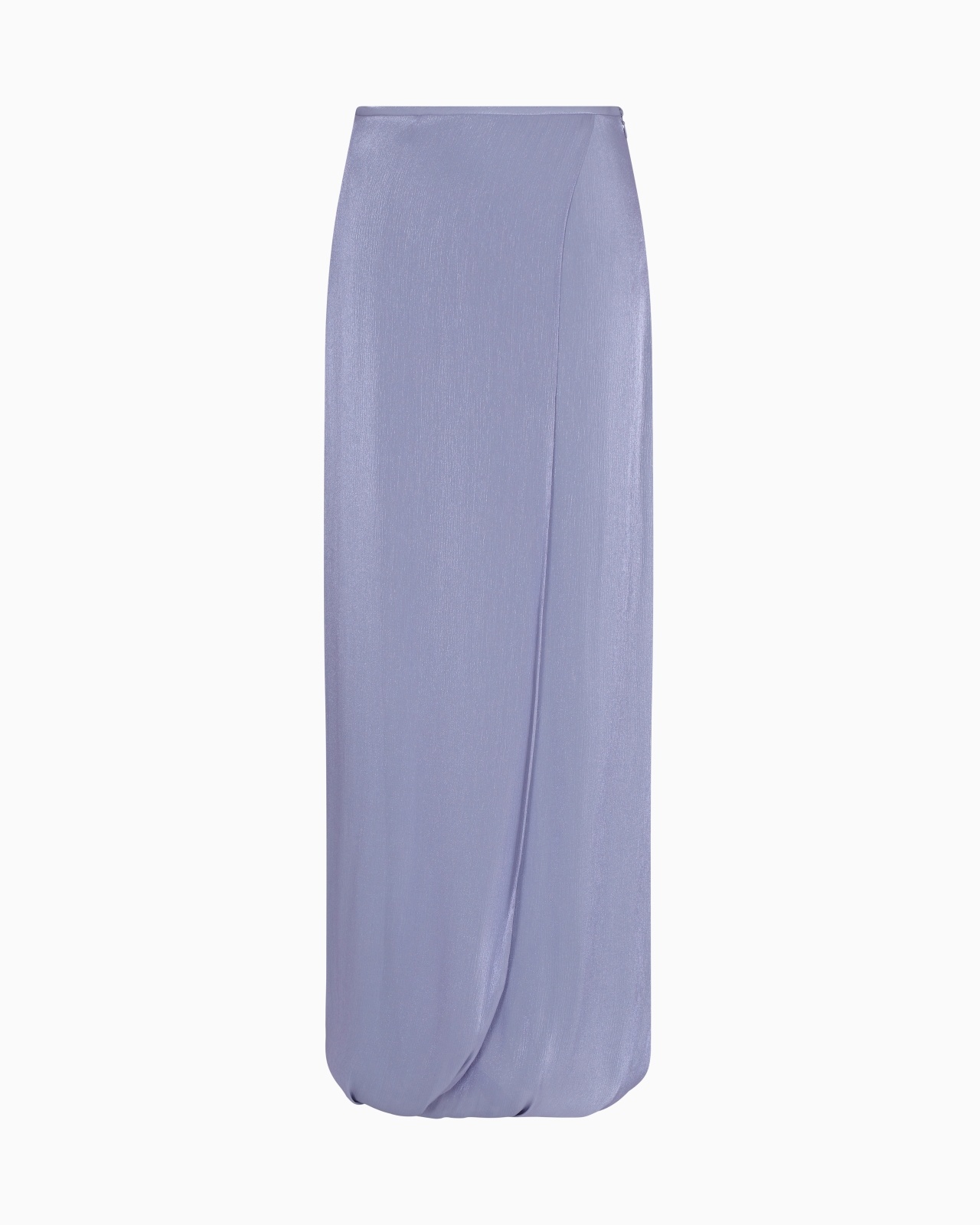 Double silk satin long skirt with clean, essential lines. The style, with an elasticated waistband and small darts, is made special by the front draped detail, which adds movement. An elegant, sophisticated offering, perfect for completing a wide array of looks. Elasticated waist Front pleats Front draping Length: 110 cm from the waist Made in Italy Product Code: GW000807TE13893U9319
