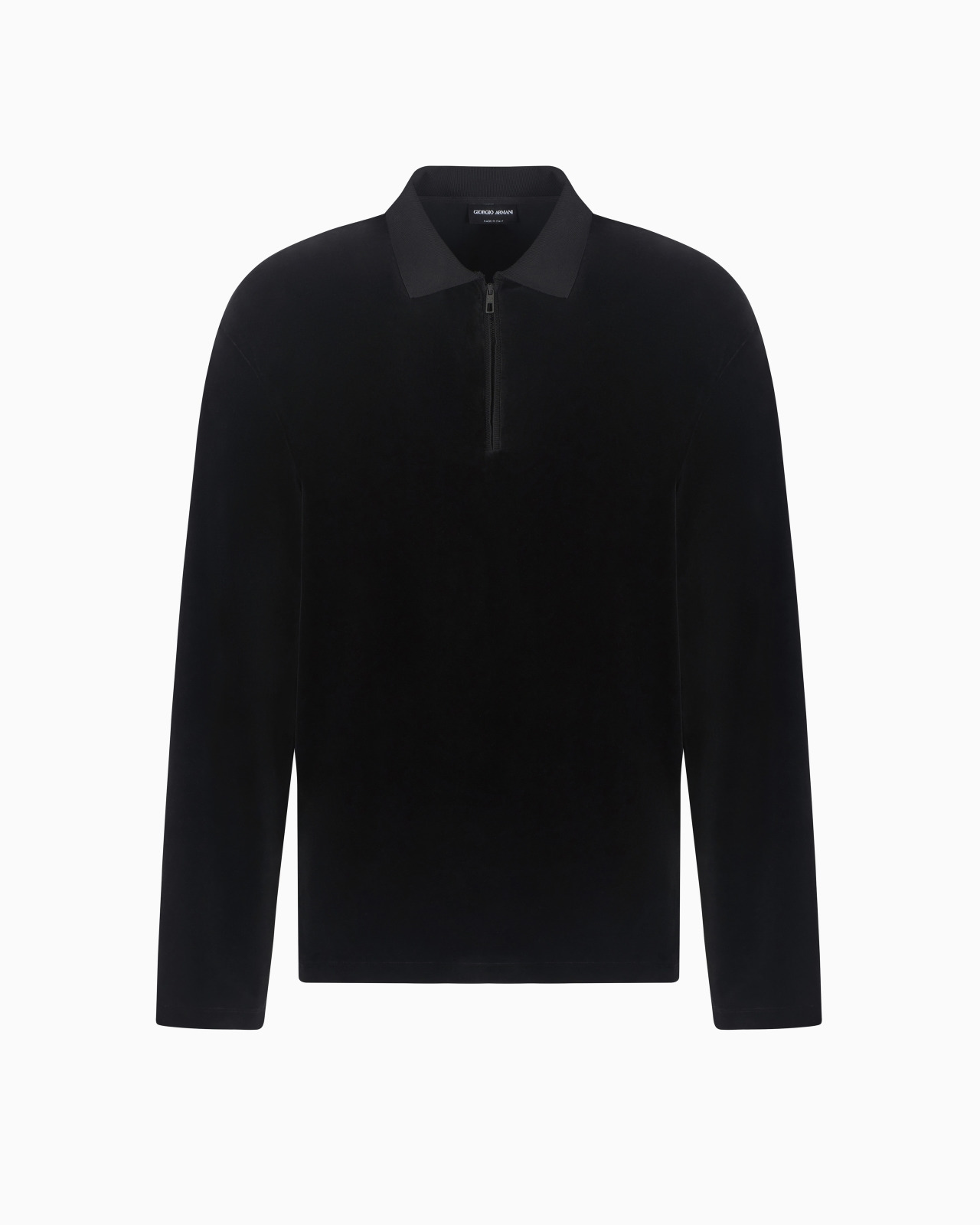 Long-sleeved polo shirt made from a cosy, comfortable, cotton-blend chenille. Embellished with a viscose knit collar and zip fastening, its linear design will complete many casual outfits with a sophisticated touch. Product Code: GM001670TE155271UC001 Details Composition 60% Cotton 35% Polyamide 5% Elastane Viscose-blend knit polo shirt collar Zip closure Long sleeves Made in Italy