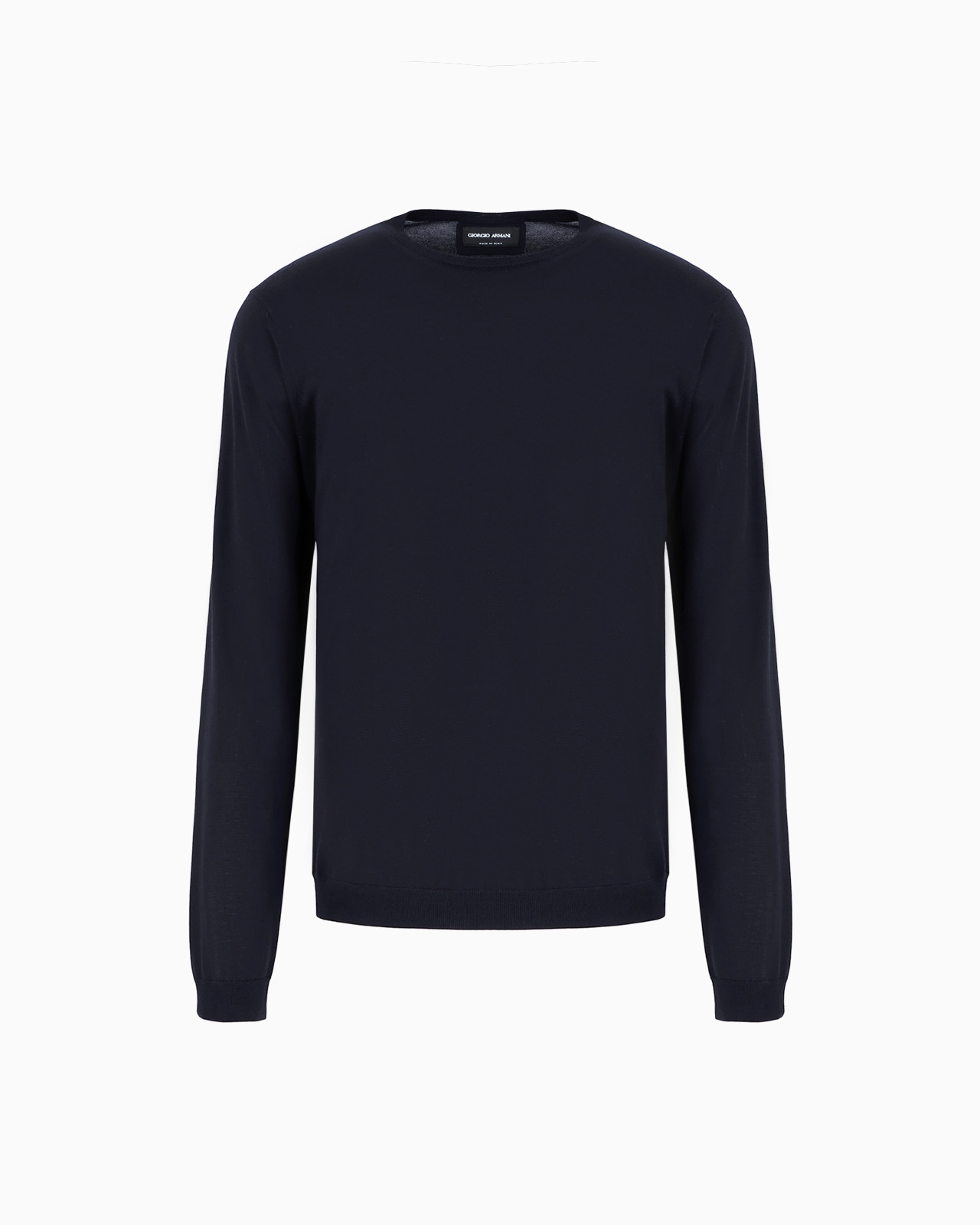 Long-sleeved crew-neck jumper made from silk and cotton and embellished with ribbed edges. An elegant, minimalist piece becomes a men’s wardrobe staple that can be worn anywhere. Product Code: 3HSM37SM63Z1UBWF Details Composition 58% Silk 42% Cotton Fineness: 18 Crew neck Long sleeves Ribbed collar, cuffs and hem Made in Italy Fitting The model is 188 cm tall and is wearing size 48 / M