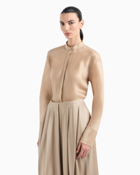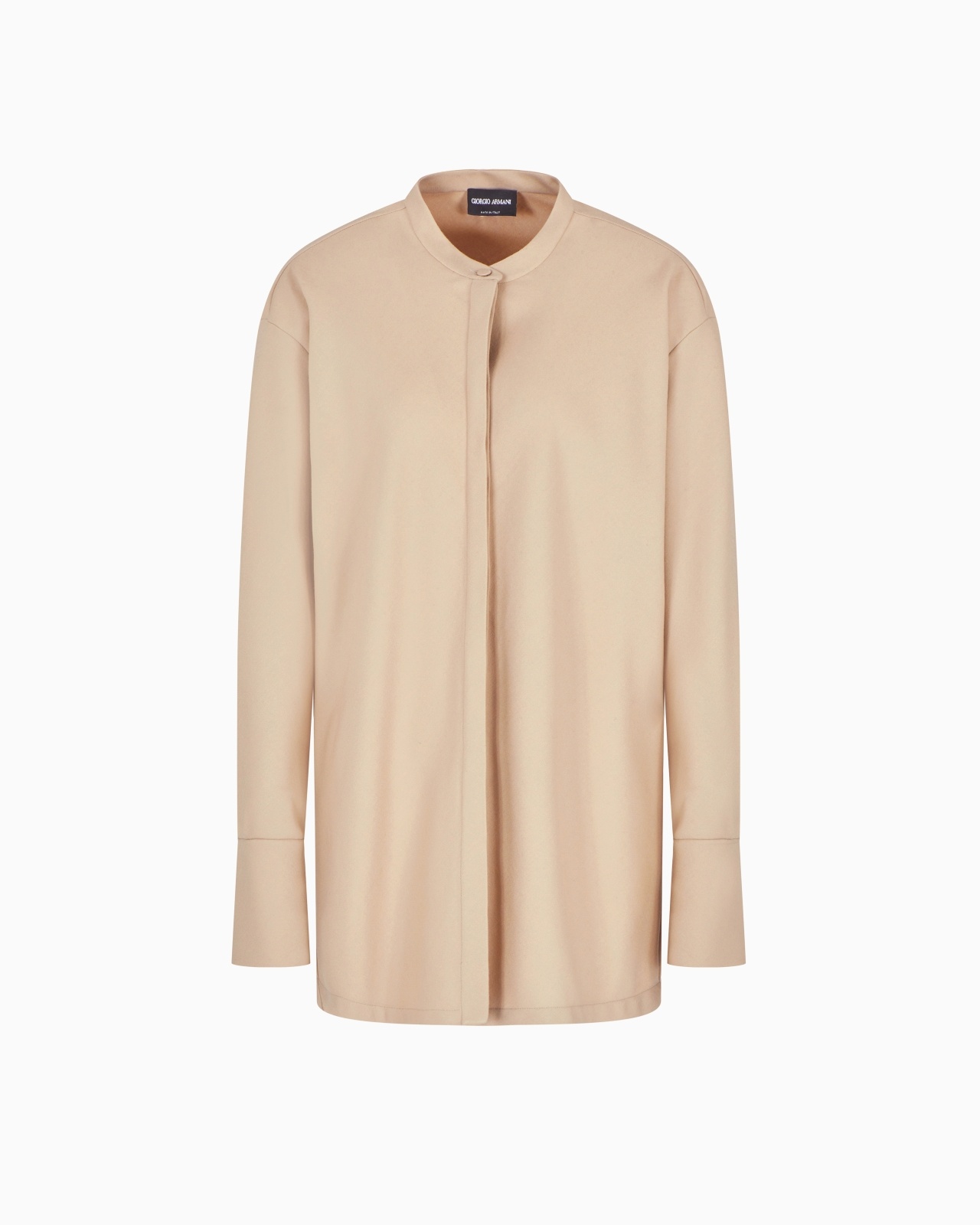 Elegant shirt made of triple silk georgette with a relaxed, slinky silhouette. Its clean-lined construction features a guru collar, button placket and long sleeves. A sophisticated, versatile piece that is perfect paired with the collection’s skirts and trousers. Guru collar Exposed button closure Wide one-button cuffs Made in Italy Product Code: GW000791TE13644U8048