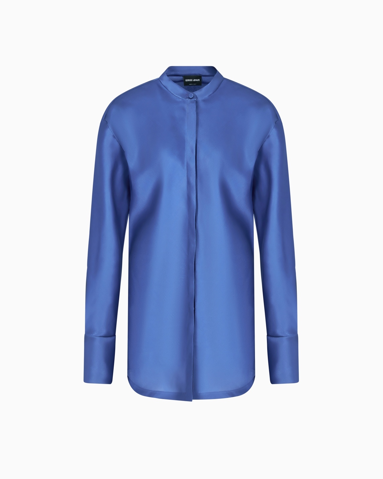Elegant shirt made of triple silk georgette with a relaxed, slinky silhouette. Its clean-lined construction features a guru collar, button placket and long sleeves. A sophisticated, versatile piece that is perfect paired with the collection’s skirts and trousers. Guru collar Exposed button closure Wide one-button cuffs Made in Italy Product Code: GW000791TE13644UB087