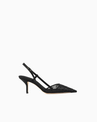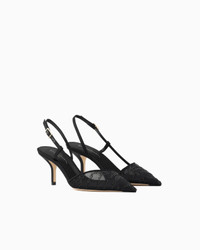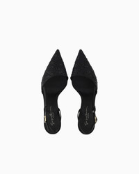 Elegant slingbacks made of black tulle illuminated by a matching animal print created with crystals. The style features a slightly asymmetric top line, a stiletto heel at a comfortable height, and ankle strap for a perfect fit. Delicate and feminine, they will complete numerous evening looks with a sophisticated touch. Pointed toes Slightly asymmetric top line Ankle strap Leather insoles Leather soles with rubber inserts Covered stiletto heel Heel height: 6.5 cm Made in Italy Product Code: X1E979XR349U594
