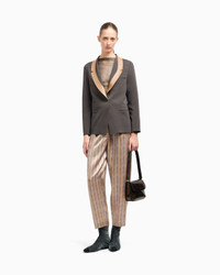 Viscose-blend jumper featuring a mesh stitch. A sensual style, perfect for wearing over a bandeau top or under a jacket, to complete evening looks teamed with relaxed-fit trousers and court shoes. The piece is part of the New Normal selection, an offering that reinterprets the brand’s archive looks with a modern twist. Pieces in elongated and fluid shapes and with an androgynous flavour dress the feminine silhouette with elegance for day-to-night looks. This season it comes in a natural colour palette animated by a series of chevron motif and houndstooth shapes, a clear reinterpretation of pieces "stolen" from the male wardrobe with a feminine twist. Fineness: 18 Boat neck Long sleeves Made in Italy Product Code: GW002149AF19822F6021