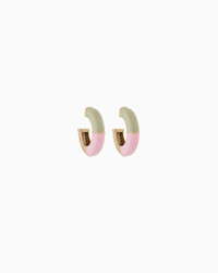 A subtle hint of pastel colour accents these semi-circular earrings made from a tin and brass alloy. The enamelled decoration in shades of sage green and lilac recall the ready-to-wear collection and distinguish this versatile offering perfect for everyday use. Butterfly backs Two-tone enamel insert Made in Italy Product Code: GW001293AF16131M7062