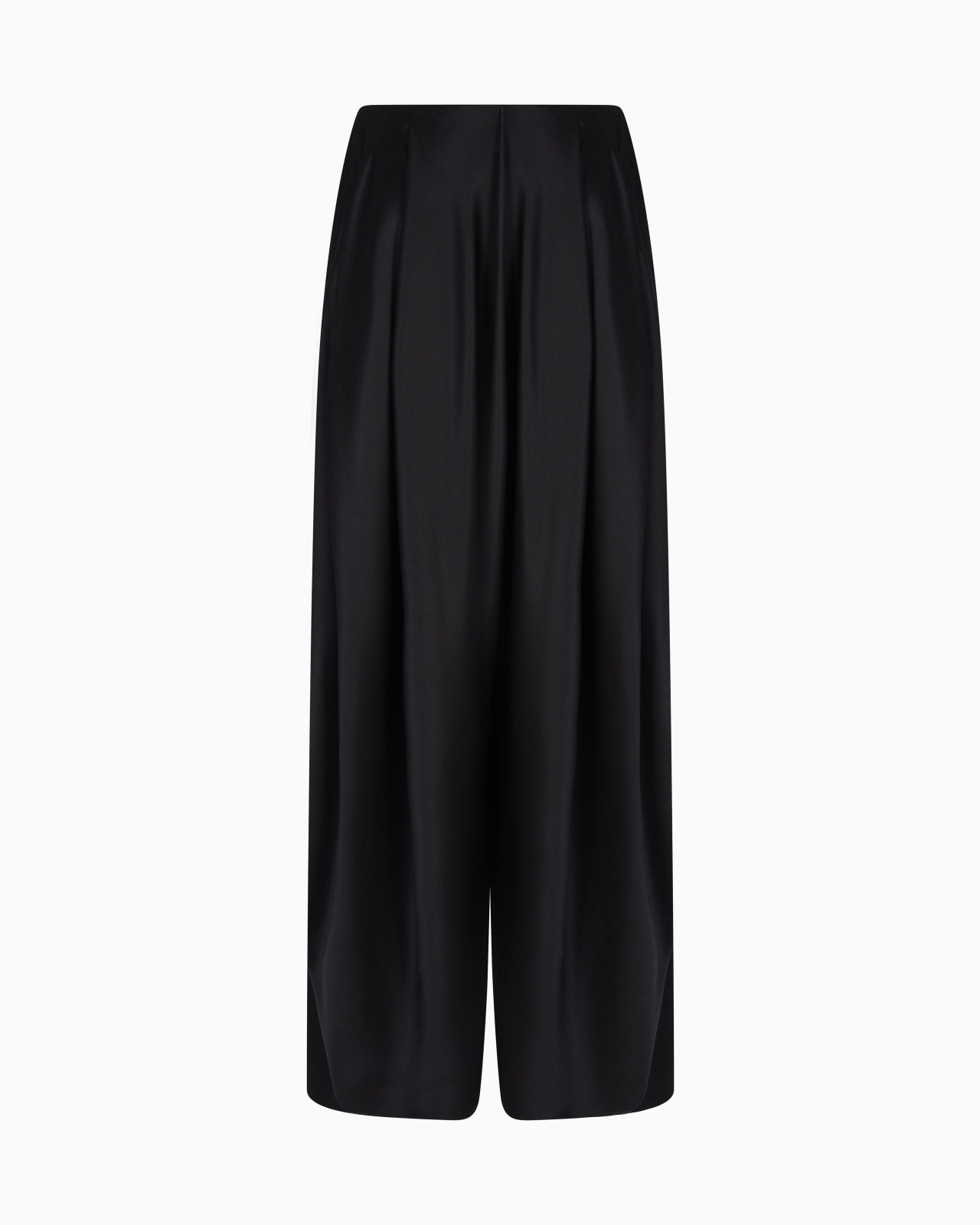 Distinctive long skirt made from luxurious double silk satin. The style is distinguished by the motif of front pleats that open towards the bottom in a sensual slit. A piece offered in the sophisticated collection shades that enhance the shine of the yarn, perfect for completing sophisticated looks. No waistband Soft pleats at the front Two side inseam pockets Centre slit Back central zip fastening Length: 105 cm from the waist Unlined Made in Italy Product Code: GW000633TE10101UC001