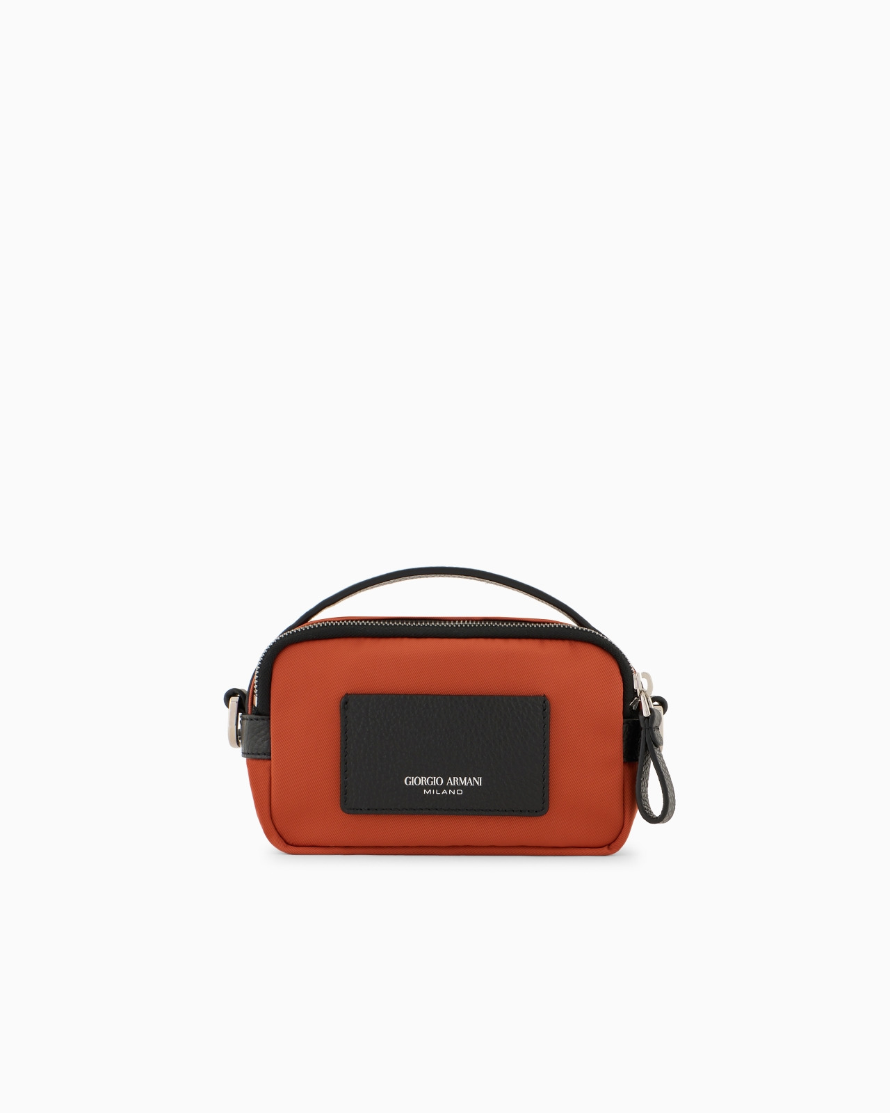 Mini-volume crossbody bag, which combines performance and design, perfect for taking to work or for leisure time. The style is made of recycled nylon and customised with pebbled-leather inserts. Featuring a zip fastening and external patch pocket, it has a practical adjustable and detachable webbing shoulder strap that allows it to be worn two ways. Product Code: Y2R693Y752E180388 Details Composition 100% Polyester Zip closure Pebbled-leather handle Pebbled leather patch pocket with embossed Giorgio Armani logo Shiny palladium hardware Adjustable, detachable webbing shoulder strap Measurements: 12 x 19 x 7 cm Made in Italy