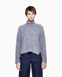 Mock-neck jumper made from cashmere and silk, embellished with an unusual boucle knit that gives a rich, three-dimensional texture, accentuating the smooth feel of the yarn. Defined by a mock neck and long sleeves, the style has a relaxed, modern silhouette, slightly shorter at the front. A sophisticated design that combines the tactile richness of the boucle with the understated elegance of the cut, creating a refined offering perfect for many looks. Fineness: 3 Mock neck Long sleeves Asymmetric hem Side slits Made in Italy Product Code: GW002114AF19707O8024