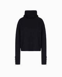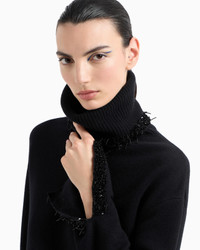 Sophisticated mock-neck jumper made from cashmere and wool that feels cosy and warm. The design’s essential construction is made special by fringe embroidered with matching sequins at the neckline and edge of the sleeves, which lights up the piece. A sophisticated, chic offering that is perfect for embellishing total black looks. Fineness: 7 Mock neck Long sleeves Slits in the cuffs Fringed embroidery detail at the collar and cuffs Made in Italy Product Code: GW000786AF14692UC001