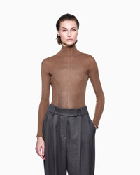 Essential and minimalist: this mock-neck jumper is crafted from textured silk and elegantly adorns the feminine silhouette. A versatile offering that is perfect worn under a jacket or paired with the collection's pleat-front trousers for a casual daywear look. The piece is part of the New Normal selection, an offering that reinterprets the brand’s archive looks with a modern twist. Pieces in elongated and fluid shapes and with an androgynous flavour dress the feminine silhouette with elegance for day-to-night looks. This season it comes in a natural colour palette animated by a series of chevron motif and houndstooth shapes, a clear reinterpretation of pieces "stolen" from the male wardrobe with a feminine twist. Fineness: 18 Mock neck Long sleeves Made in Italy Product Code: GW002112AF19705U6036