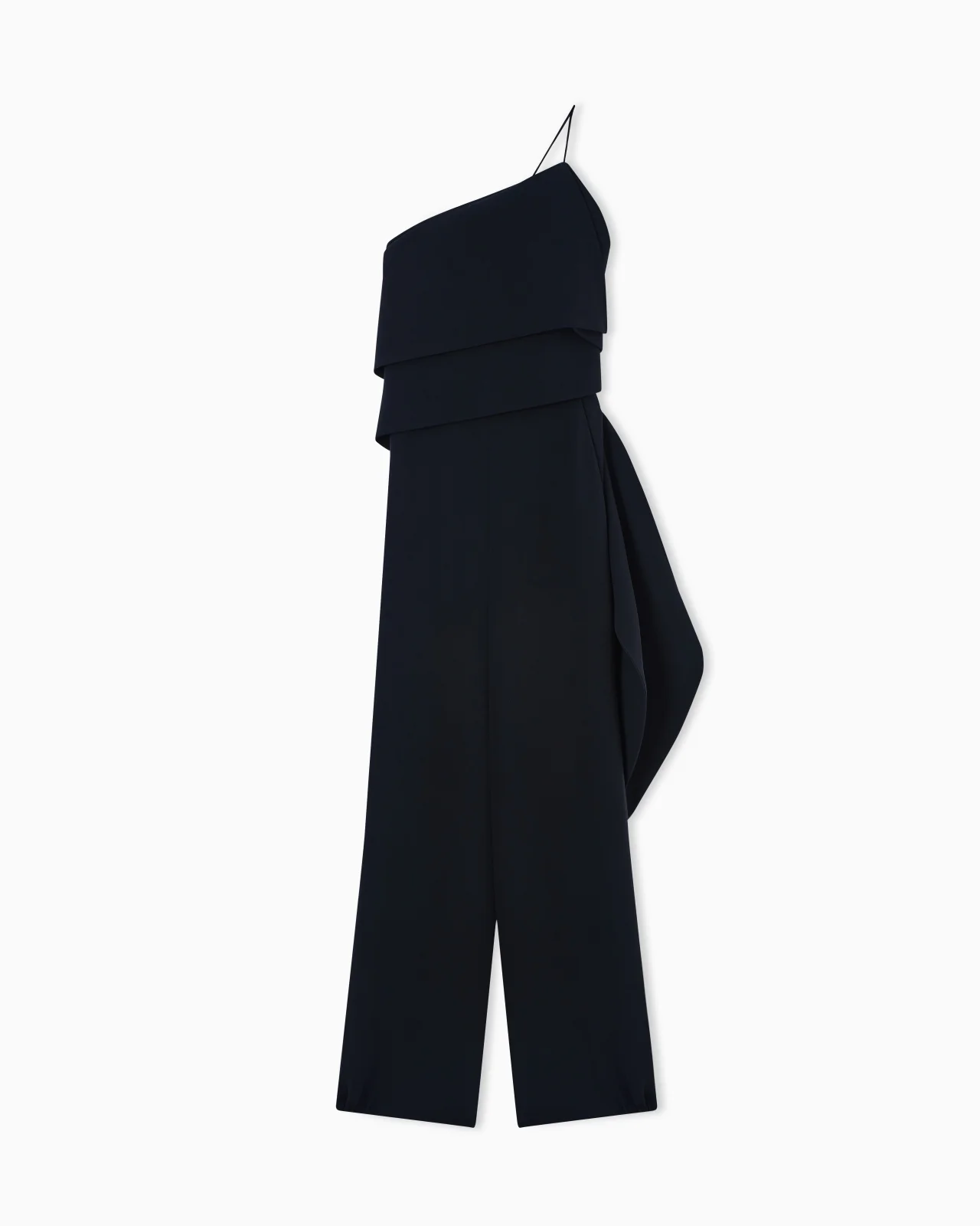 Elegant one-shoulder jumpsuit made of silk cady. The style is embellished with a panel detail on the side that creates flounces along the garment, adding movement and uniqueness. An item for the evening, perfect for numerous occasions. One shoulder with thin strap Asymmetrical neckline with flounce detail V-neckline on the back with flounces and draping Side pockets Unlined Length: 100 cm from the waist Made in Italy Product Code: GW003338TE10071UC001