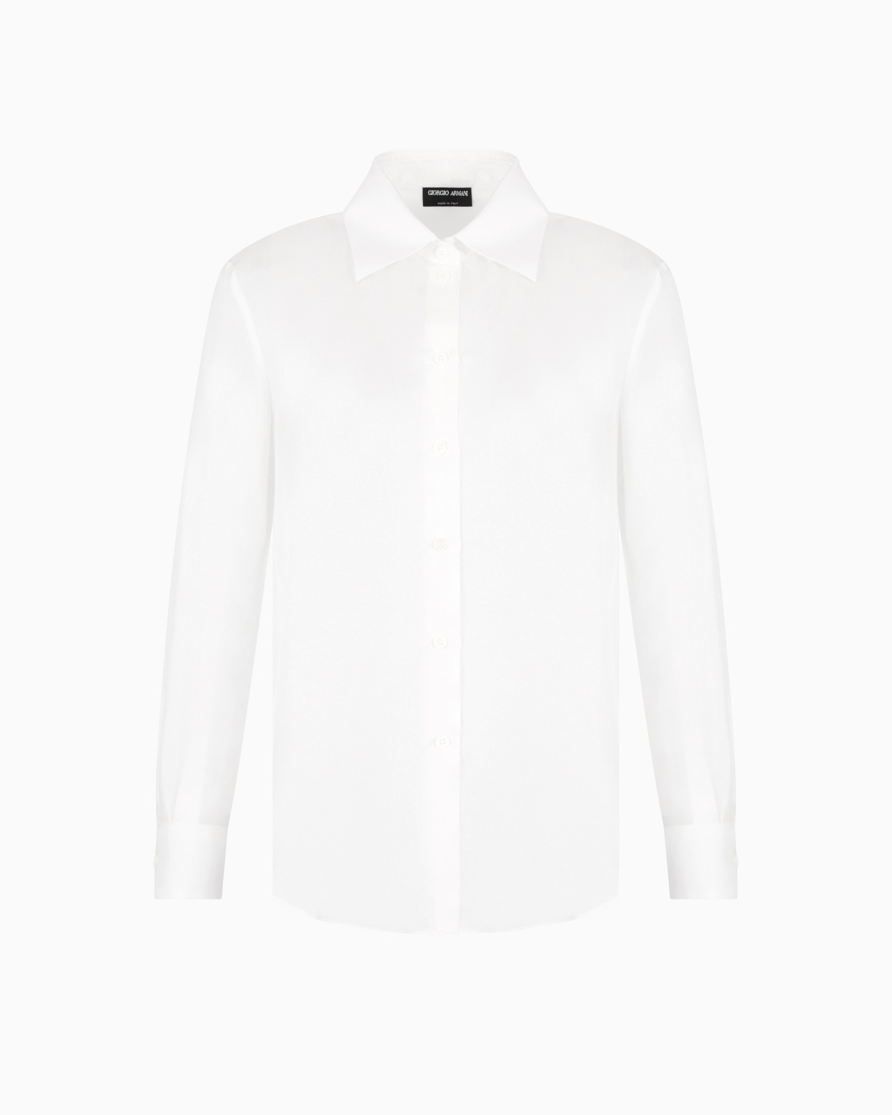 An absolute essential, no woman’s wardrobe is complete without a white shirt to pair with a variety of looks. This organic silk style features a mother-of-pearl button closure, classic collar and buttoned cuffs, making it perfect in a wide array of formal or less formal looks. Product Code: 2WHCC03FT03NP1U0BN Details Composition 100% Silk Long sleeves Classic collar Faced placket with mother-of-pearl button closure Buttoned cuffs Made in Italy