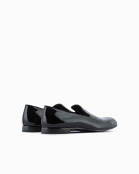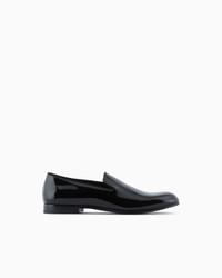 Attractive, understated, sophisticated elegance expressed with a modern touch. A shoe inspired by these ideals, a symbol of Giorgio Armani style. Signature patent leather loafers with embossed GA logo. Product Code: X2J138XL5801A083 Details Composition 100% Calf-skin leather Embossed front GA logo Leather insoles Rubber monobloc soles Made in Italy