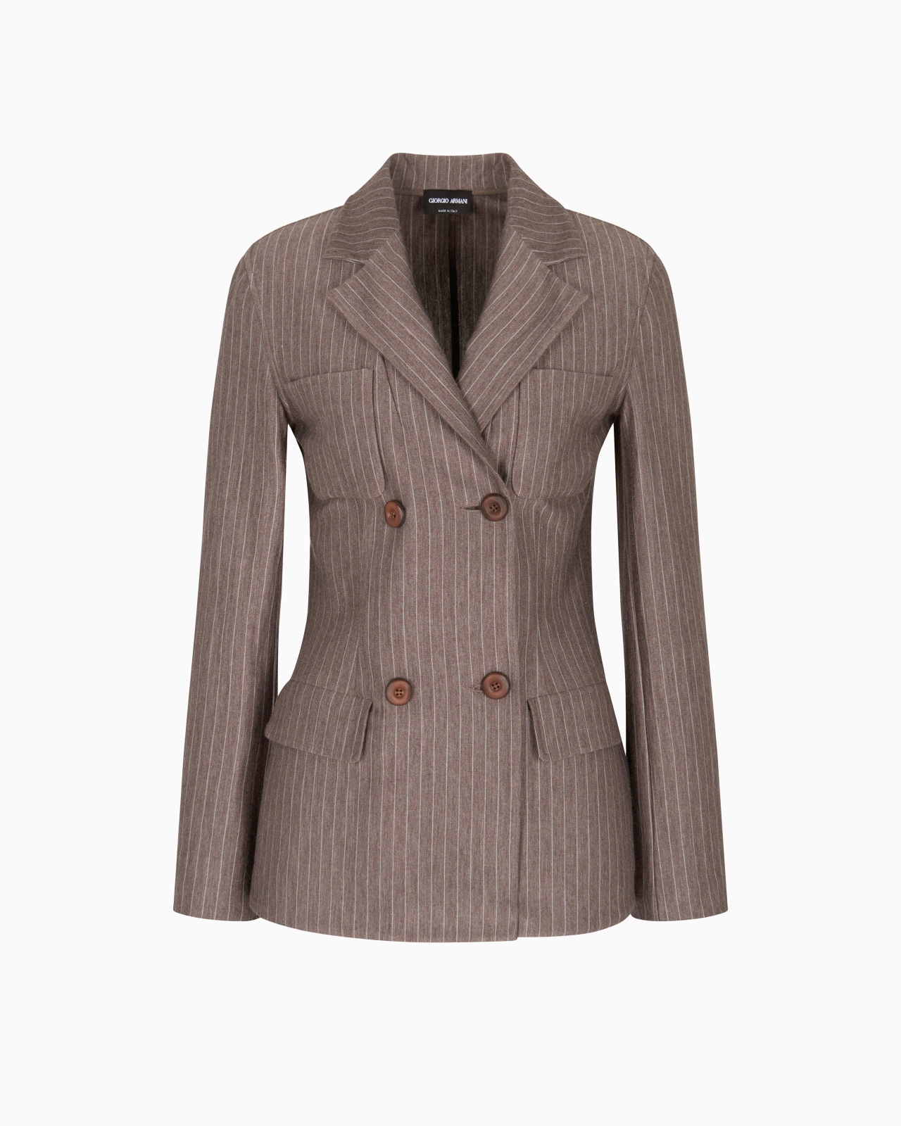 PINSTRIPED CASHMERE JERSEY AND SILK DOUBLE-BREASTED JACKET