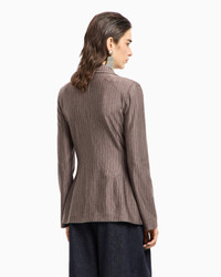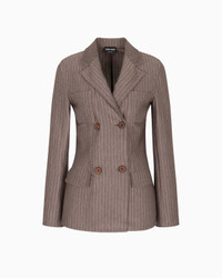 Cashmere and silk jersey double-breasted jacket embellished with a pinstriped motif. Defined by wide notched lapels and a double-breasted button closure, it features a figure-skimming silhouette, flap pockets and patch pockets on the chest. A sophisticated offering with a masculine appeal, it can complete daytime looks with a bold touch. Double-breasted jacket Notched lapels Four-button, double-breasted closure Two small patch pockets on the chest Two front flap pockets Length: 68 cm Made in Italy Product Code: GW002064AF19784F6007