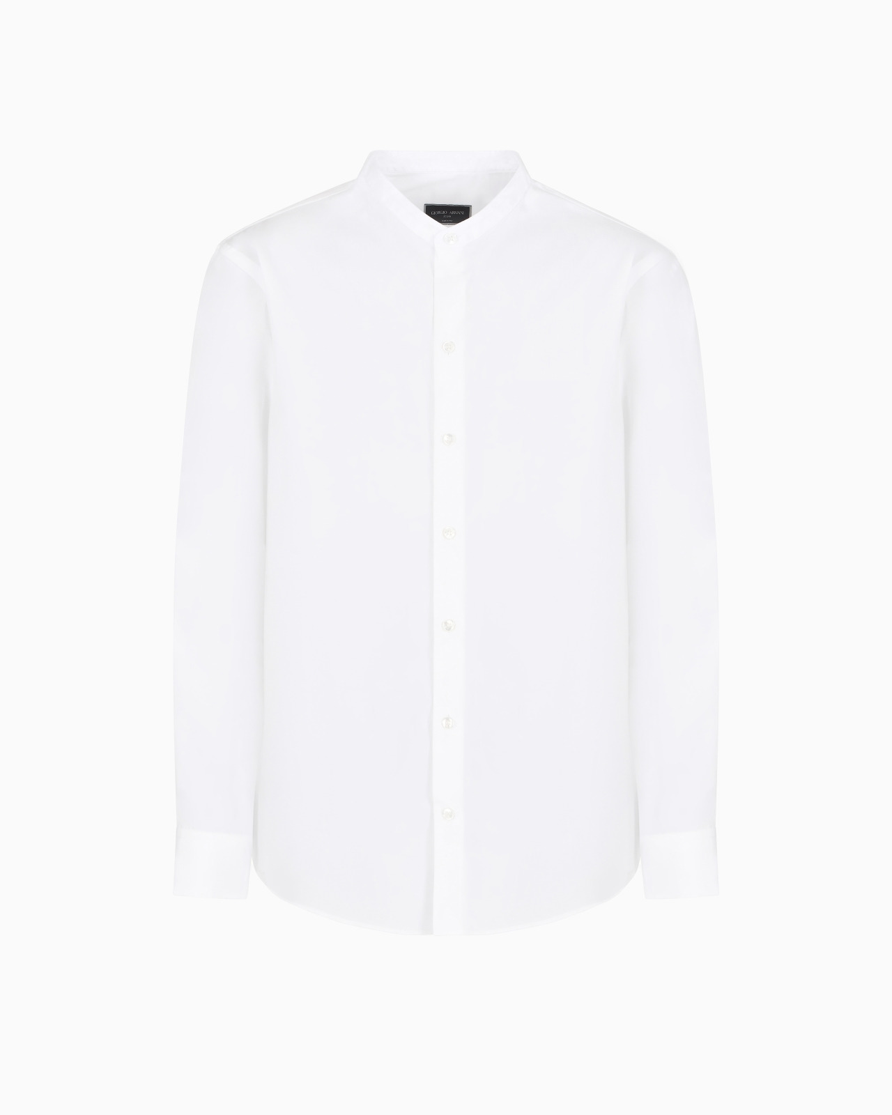 The Icon collection encapsulates the defining aesthetics around which the identity of the Giorgio Armani brand has evolved. A collection of must-have pieces that represent the Armani legacy, history and peerless mastery of tailoring. Iconic, classic, ageless designs made from the brand’s signature fabrics and all-Italian craftsmanship. Regular-fit shirt made of stretch cotton available in the versatile colours from the Icon selection. It features an iconic guru collar, mother-of-pearl buttons, back yoke and delicate, monochromatic satin piping. Product Code: 8CGCCZ18TZ5171U0BN Details Composition 75% Cotton 21% Polyamide 4% Elastane Icon shirt Guru collar Front fastening with mother-of-pearl effect buttons Button cuffs Back yoke Made in Italy Fitting The model is 188 cm tall and is wearing size 40