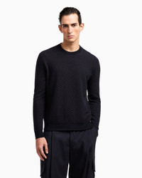 PLATED CHEVRON VIRGIN WOOL, CREW-NECK JUMPER