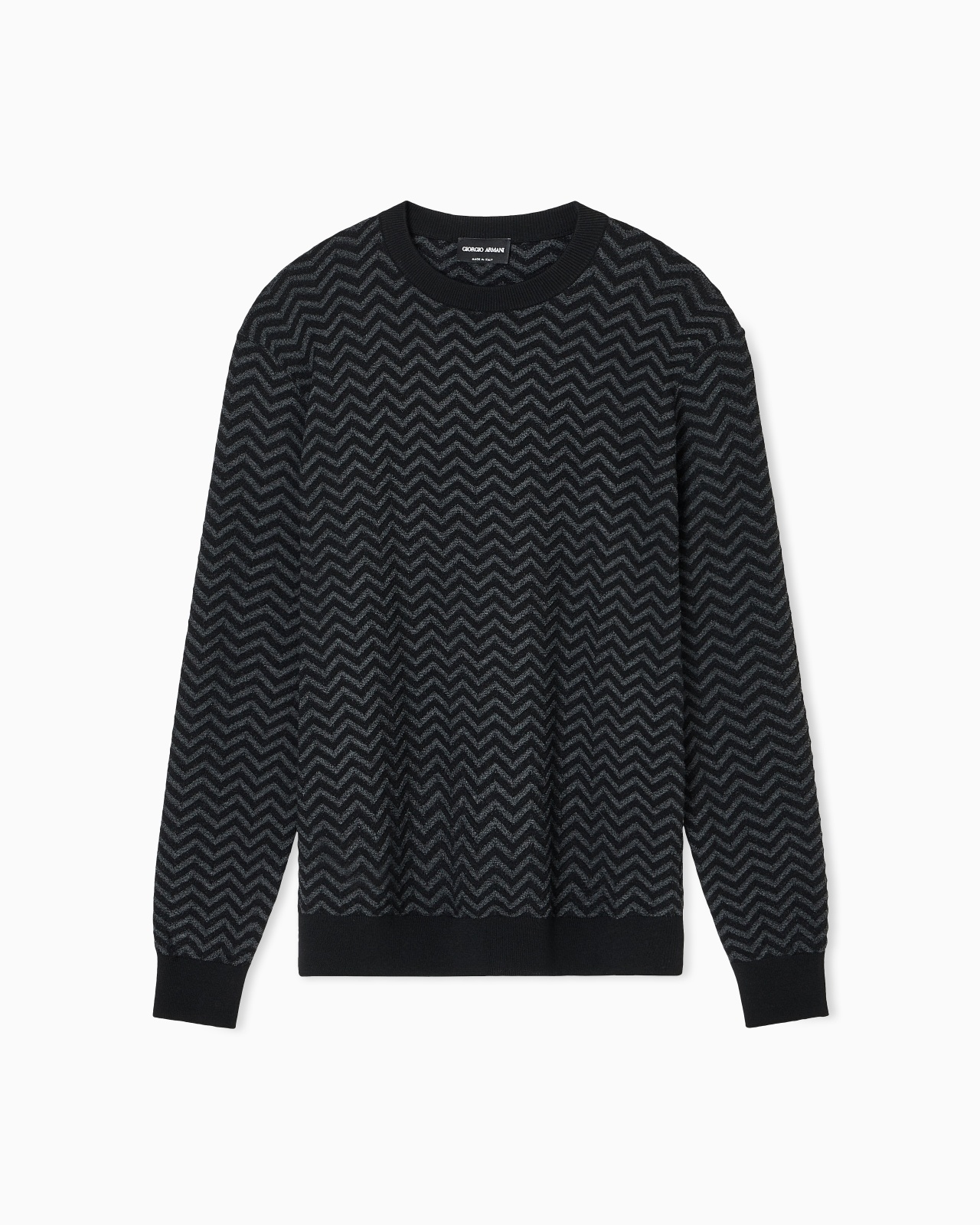 PLATED CHEVRON VIRGIN WOOL, CREW-NECK JUMPER