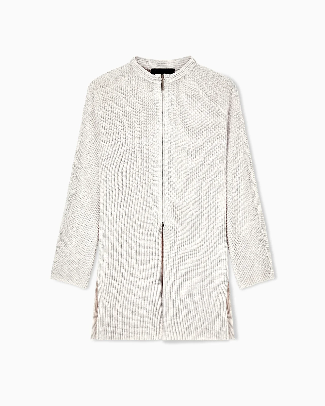 Distinctive jacket made of pleated viscose blend knit. The style, which elegantly adorns the silhouette, features a front zip fastening with a double pull, two side slits and a slit at the centre back. A sophisticated style designed to add laid-back allure to daytime looks. The piece is part of the New Normal selection, an offering that reinterprets the brand’s archive looks with a modern twist. Pieces in fluid shapes and with an androgynous flavour dress the feminine silhouette with elegance for day-to-night looks. This season it is presented in a natural colour palette with a sophisticated and authentic simplicity. Crew neck Double-slider zip closure Two side vents Central back vent Length: 68 cm Unlined Made in Italy Product Code: GW002829TE21546U6208