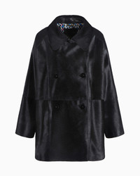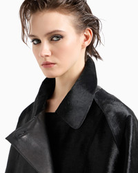 PONY SKIN-EFFECT LEATHER DOUBLE-BREASTED PEA COAT