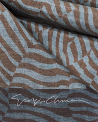 The print, inspired by the urban tiger theme, is reinterpreted in a geometric design to adorn this exquisite silk stole. Customised with the signature logo, this style is perfect to complete everyday looks with a sophisticated touch. Contrasting Giorgio Armani signature logo Measurements: 185 x 35 cm Made in Italy Product Code: GW001024AF15287F6189
